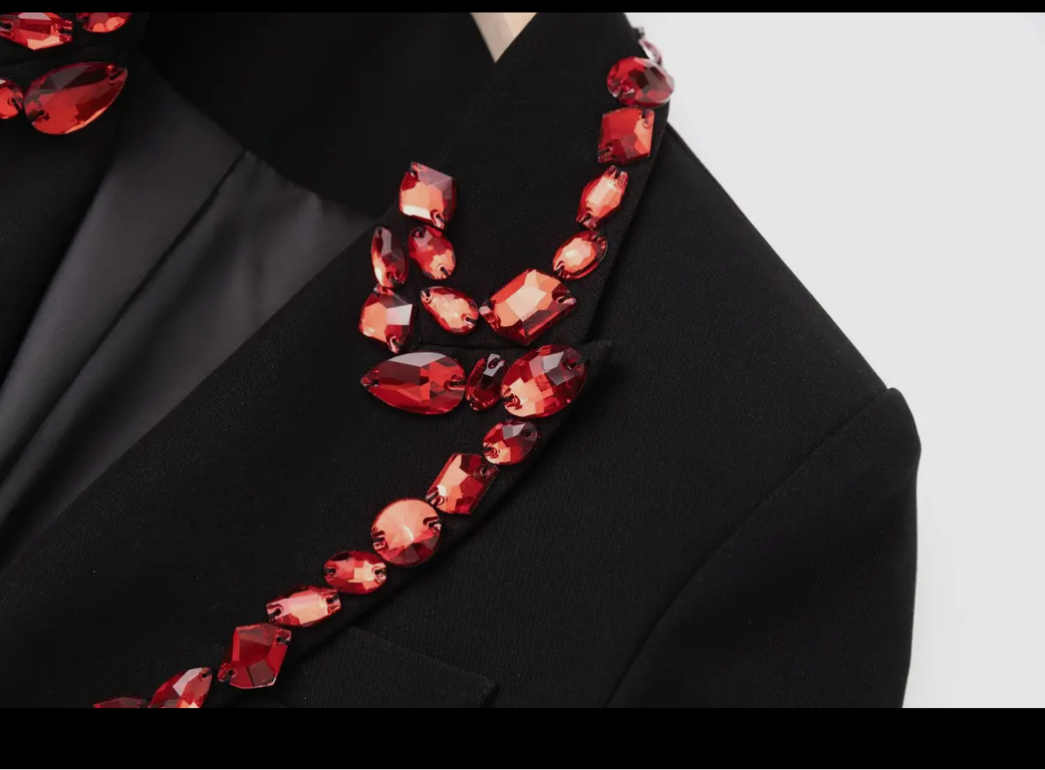 Slim Black Blazer / Red beaded trim with elegant stonesÂ