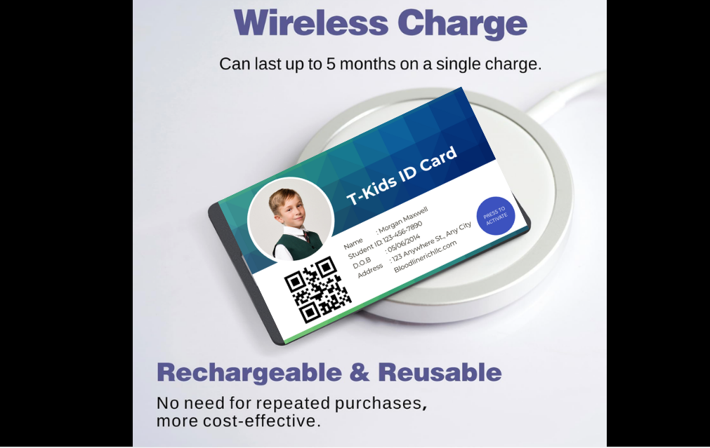 The T-Kids GPS Safety Card is a slim, credit card–sized tracker designed to keep children safe and give parents peace of mind. Whether tucked into a backpack, lunchbox, or pocket, this powerful card uses real-time GPS tracking so you always know where your child is.
